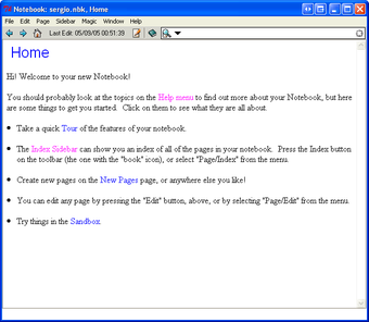 La idea principal de Notebook es crear un archivo estructurado en páginas distintas, enlazadas entre ellas y en las que sea fácil buscar y encontrar cualquier contenido incluido.